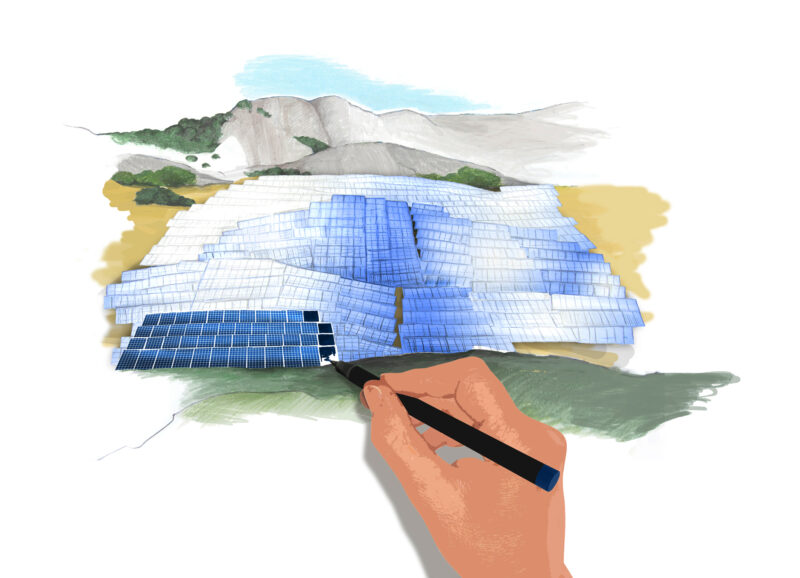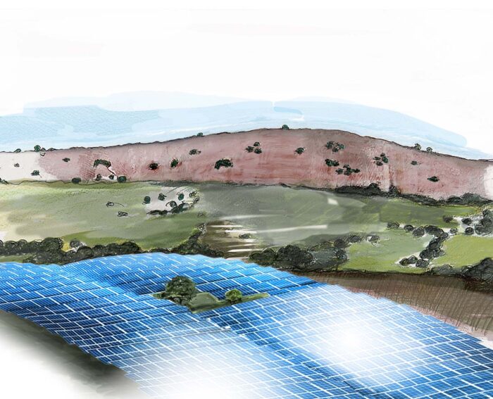 Meine Buntstift-Zeichnungen von spanischen Landschaften mit Photovoltaik-Anlagen erschienen im Magazin Photon. Es ging dabei um die Pläne zu großen Solarprojekten, deren Finanzierung noch unklar war.