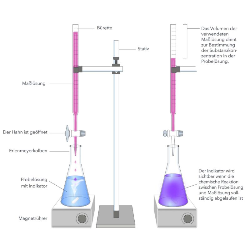 Tropfenweise die Konzentration einer Substanz in einer Probelösung bestimmen,